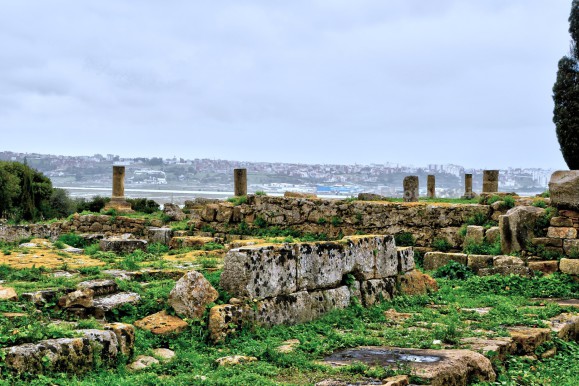 Blick auf den Palast der numidisch-mauretanischen Könige. Zu Jahresbeginn regnete es sintflutartig und löste über Nordmarokko starke Überschwemmungen aus. Das Tal wirkt seitdem wie in der Antike als